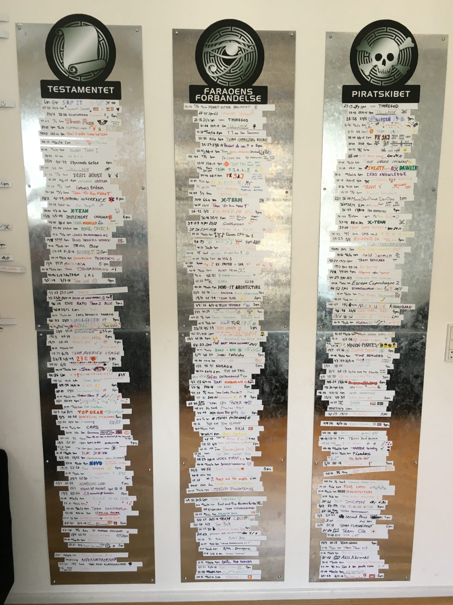 Final haben wir uns für Keyhunt in Kopenhagen entschieden. Die Räume von Keyhunt Kopenhagen befinden sich in der 3. Etage eines Altbaus, direkt an der S-Bahn-Station Nørreport und sind somit einfach zu erreichen. Vor Ort wurden wir von zwei netten Gamemasterinnen mit sehr gutem Englisch in Empfang genommen. Wir wurden in den Aufenthaltsraum geführt, an dessen Wänden alle bisher gespielten Teams mit Zeiten verewigt waren sowie die Top Teams der Räume. Uns stach sofort ins Auge, dass alle Räume anscheinend in einer Bestzeit von um die 30 Minuten lösbar schienen.